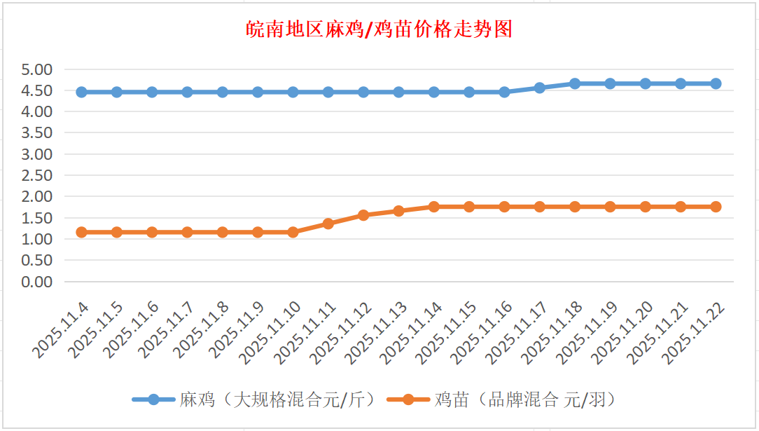 鸡病专业网独家信息:2025年11月22日皖南地区817-麻鸡行情最新走势