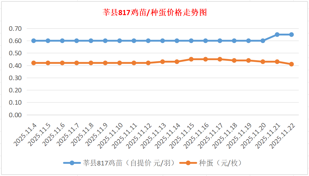 817鸡苗(混合):报价自提0.65元/羽。(稳)
