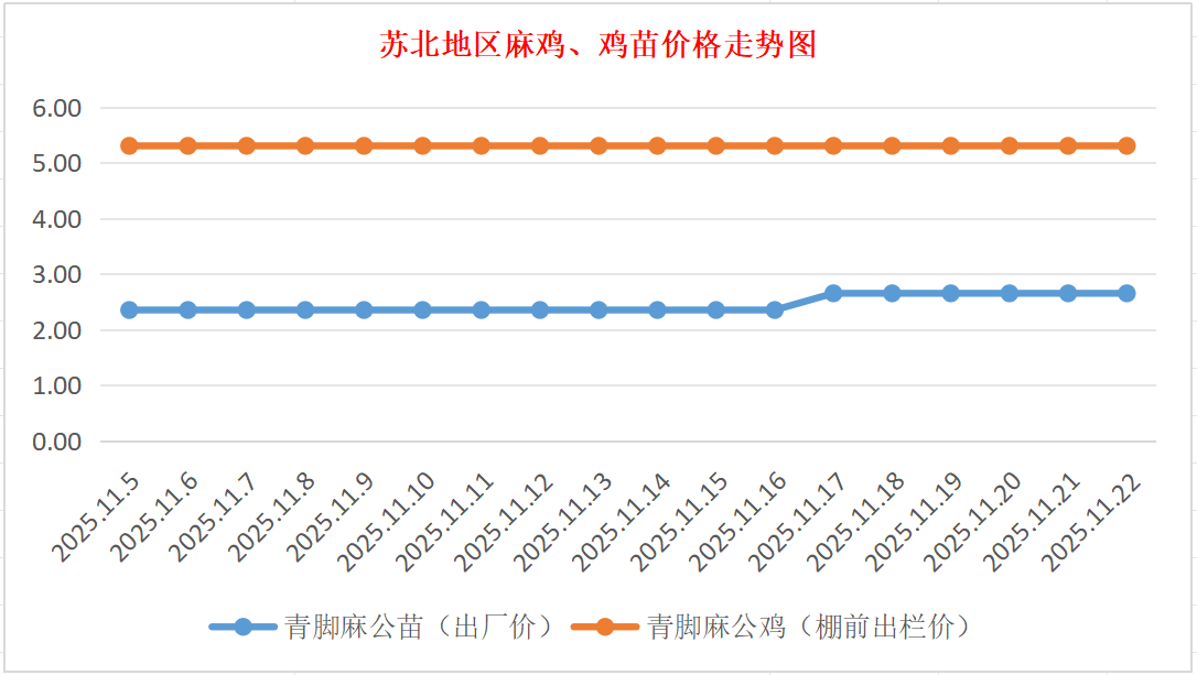 苏北地区麻鸡、鸡苗价格走势图(图源:鸡病专业网)