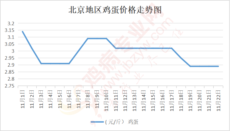 鸡病专业网消息:11月22日,北京大洋路鸡蛋主流批发价格127-128元/44斤,稳,到货4台车,成交灵活,走货正常;回龙观鸡蛋127元/44斤,稳;顺义石门鸡蛋127元/44斤,稳。