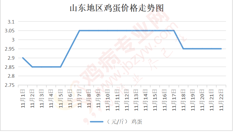 鸡病专业网消息:11月22日,山东地区莱阳鸡蛋2.95元/斤,稳;青岛鸡蛋2.95元/斤,稳;诸城鸡蛋3元/斤,稳;安丘鸡蛋2.9元/斤,稳;昌乐鸡蛋2.9元/斤,稳;寿光鸡蛋2.9元/斤,稳;昌邑鸡蛋2.9元/斤,稳;高密鸡蛋3元/斤,稳;青州鸡蛋2.9元/斤,稳;临朐鸡蛋2.9元/斤,稳;莱州鸡蛋2.95元/斤,稳;威海鸡蛋2.95元/斤,稳;临沭鸡蛋2.9元/斤,稳;沂水鸡蛋2.9元/斤,稳;沂南鸡蛋2.9元/斤,稳;莒南鸡蛋2.9元/斤,稳;兰陵县鸡蛋2.9元/斤,稳;日照鸡蛋2.9元/斤,稳;莒县鸡蛋2.9元/斤,稳;日照辛萁商贸鸡蛋2.9元/斤,稳;泗水鸡蛋价格84元/30斤,稳;济宁、汶上鸡蛋价格84元/30斤,稳;梁山、东平红蛋价格84元/30斤,稳;枣庄滕州地区鸡蛋混码主流到户86元/30斤,稳;泰安地区新泰鸡蛋价格84元/30斤,稳;菏泽地区曹县主流到户84元/30斤,稳;成武鸡蛋价格84元/30斤,稳;单县到户84元/30斤,稳;聊城莘县84元/30斤,稳。