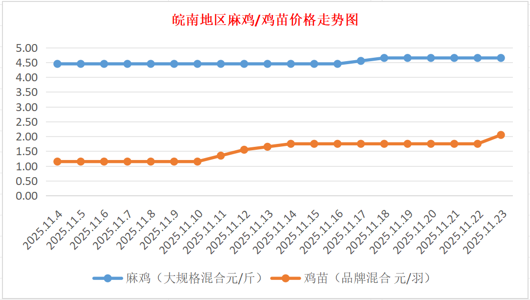 鸡病专业网独家信息:2025年11月23日皖南地区817-麻鸡行情最新走势