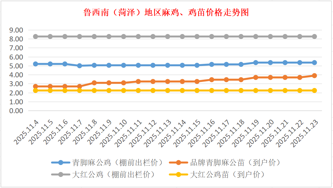 菏泽地区麻鸡、鸡苗价格走势图(来源:鸡病专业网)
