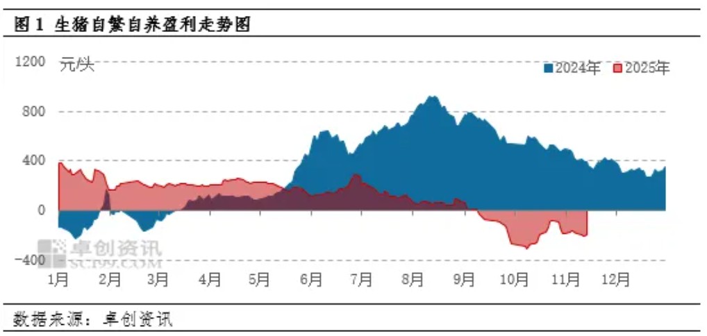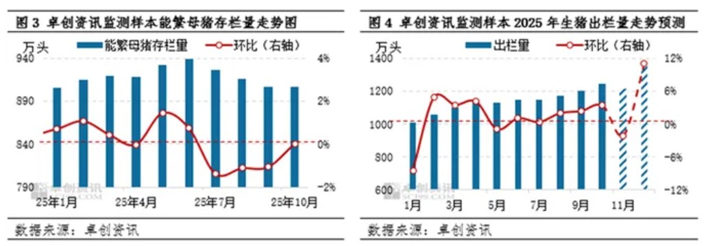 另一方面,养殖端出栏意愿转强!昨日,国内生猪合约报价偏低,其中,近月2601合约报价11440元/吨,市场对于猪价前景信心不足。尤其是,年初母猪存栏处于高位,且,集团猪企母猪存栏存在逆势增加的局面,年末适重生猪供应格局宽松!叠加,此前,二育入场以及养殖端压栏惜售,市场中大猪供应能力或显著提升,养殖端信心不足,择机出栏情绪较高!