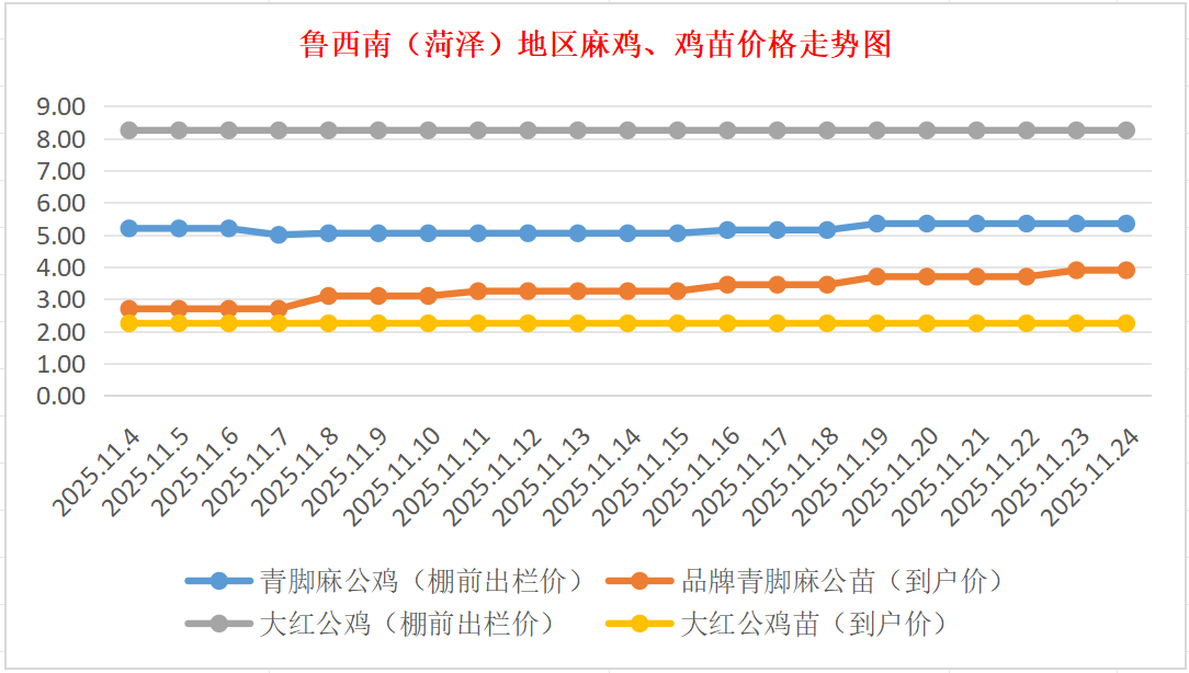 菏泽地区麻鸡、鸡苗价格走势图(来源:鸡病专业网)