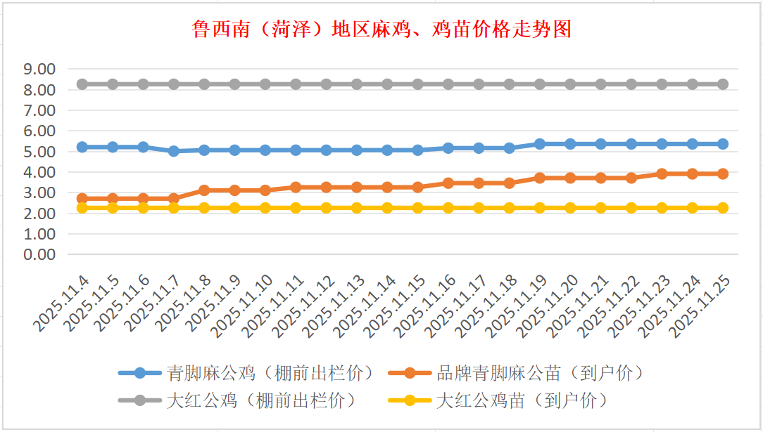 11月25日鲁西南(菏泽)地区麻鸡、鸡苗价格行情