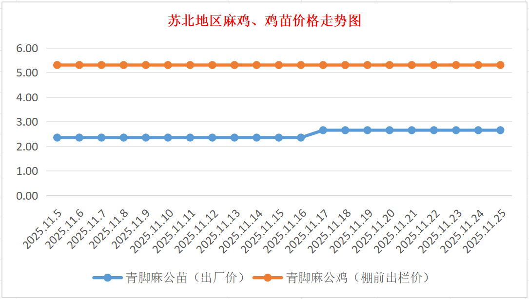 苏北地区麻鸡、鸡苗价格走势图(图源:鸡病专业网)