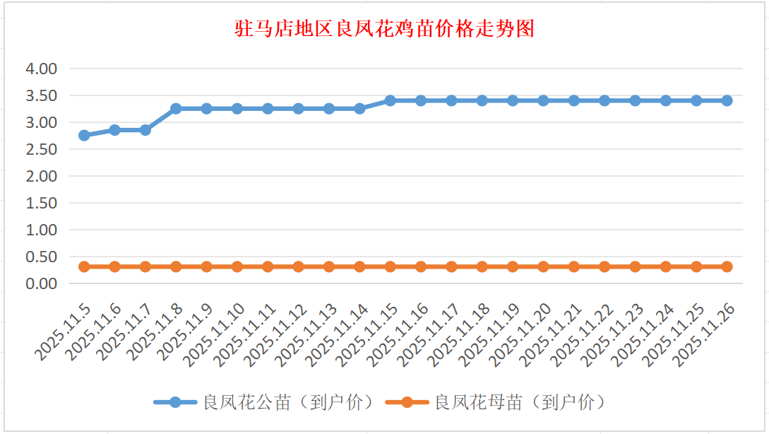 良凤花鸡苗:价格稳定,公苗到户价3.30-3.50元/羽,母苗到户价0.30元/羽,稳。