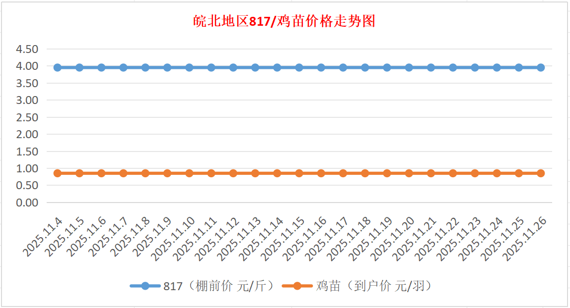 鸡病专业网独家信息:2025年11月26日皖北地区817-麻鸡行情最新走势