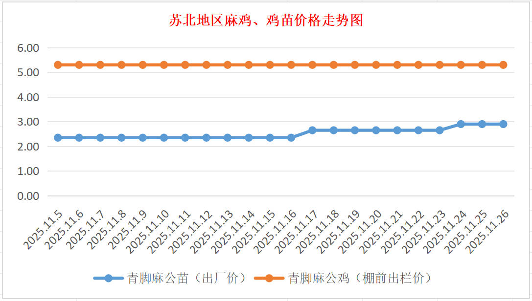 苏北地区麻鸡、鸡苗价格走势图(图源:鸡病专业网)
