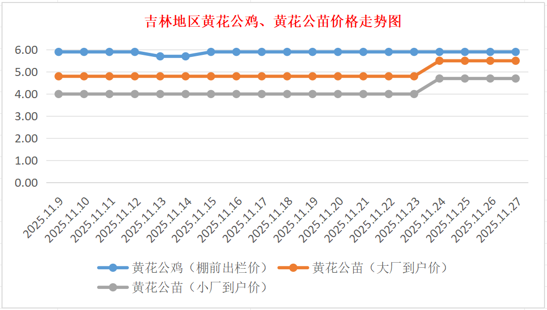 吉林地区黄花公鸡价格走势图(来源:鸡病专业网)