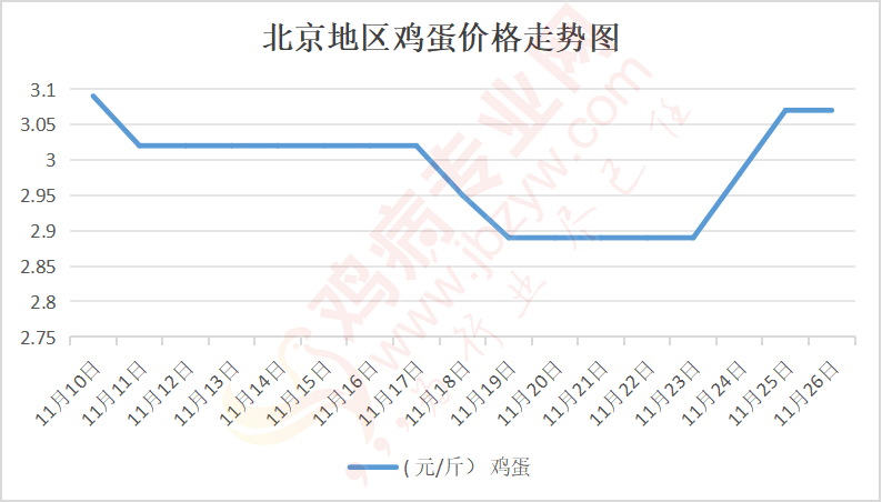 鸡病专业网消息:11月26日,北京大洋路鸡蛋主流批发价格135-138元/44斤,稳,到货5台车,成交灵活,走货一般;回龙观鸡蛋135元/44斤,稳;顺义石门鸡蛋135元/44斤,稳。