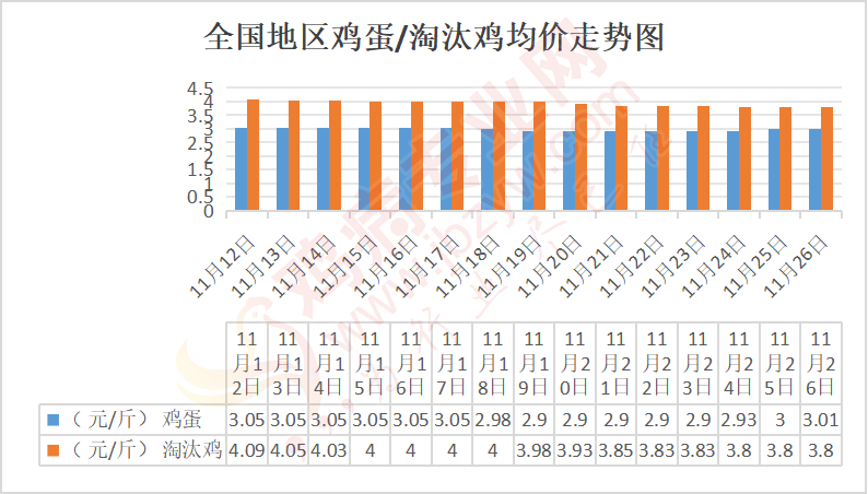 黑龙江地区:绥化鸡蛋3-3.1元/斤,淘汰鸡4-4.1元/;