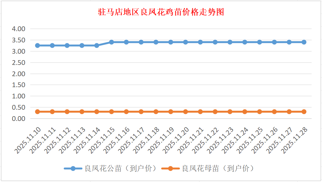 良凤花鸡苗:价格稳定,公苗到户价3.30-3.50元/羽,母苗到户价0.30元/羽,稳。