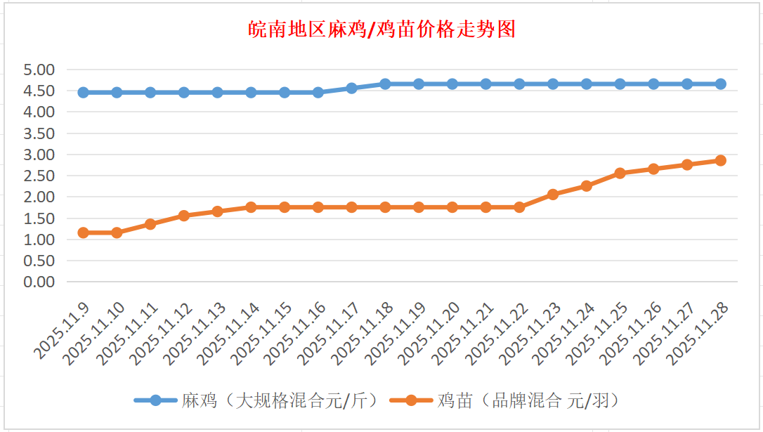 鸡病专业网独家信息:2025年11月28日皖南地区817-麻鸡行情最新走势