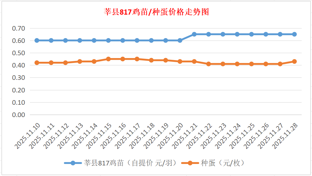 种蛋:昨日种蛋0.42-0.43元/枚。