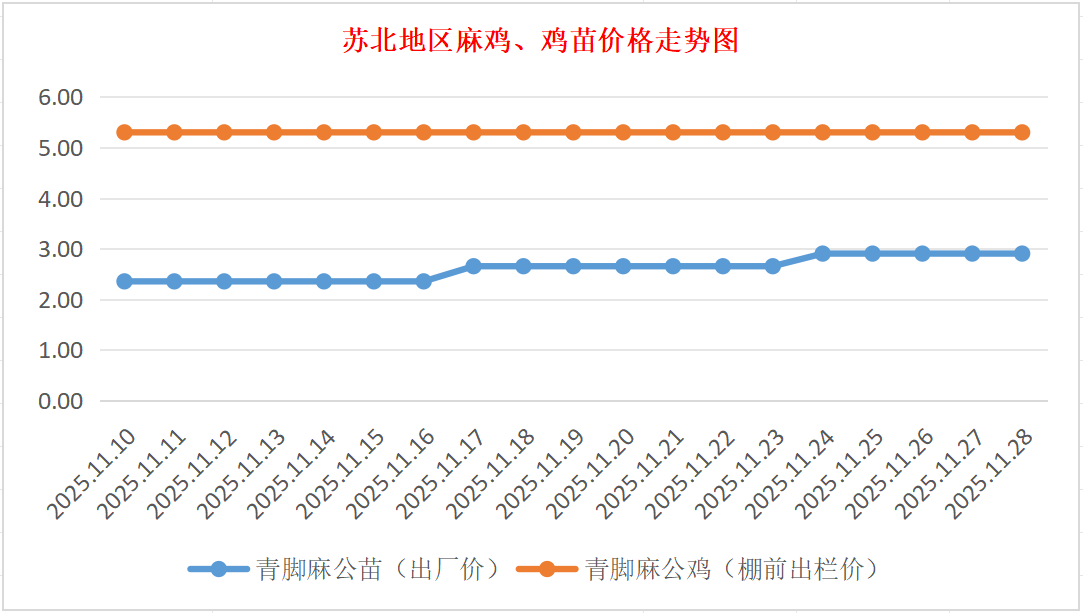 苏北地区麻鸡、鸡苗价格走势图(图源:鸡病专业网)