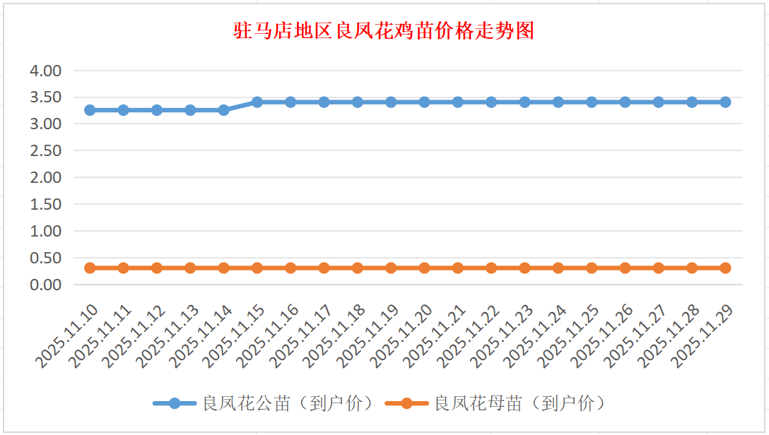 良凤花鸡苗:价格稳定,公苗到户价3.30-3.50元/羽,母苗到户价0.30元/羽,稳。