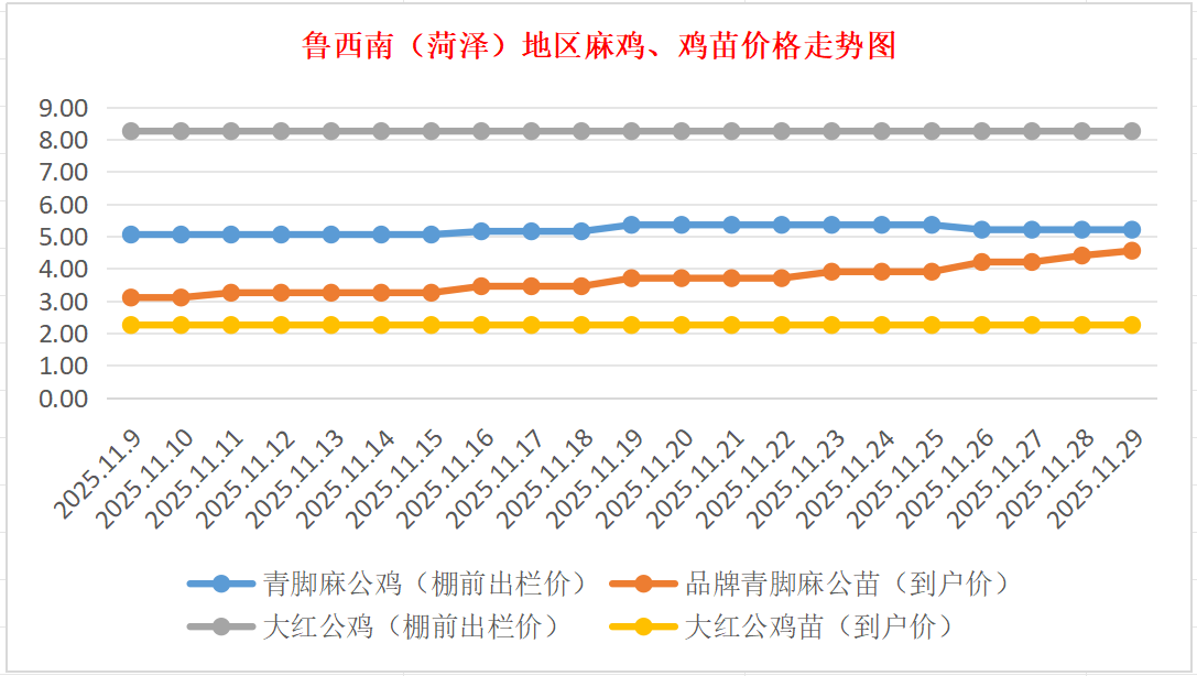 菏泽地区麻鸡、鸡苗价格走势图(来源:鸡病专业网)