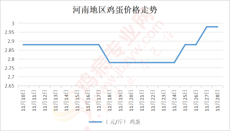 鸡病专业网消息:11月28日,河南郑州鸡蛋3元/斤,稳;新密鸡蛋3元/斤,稳;荥阳鸡蛋3元/斤,稳;中牟鸡蛋3元/斤,稳;周口鸡蛋2.95元/斤,稳;商丘鸡蛋90元/30斤,稳;鹤壁鸡蛋2.95元/斤,稳;汝州鸡蛋2.95元/斤,稳;开封鸡蛋90元/30斤,稳;漯河鸡蛋2.95元/斤,稳;漯河临颍鸡蛋2.95元/斤,稳;许昌鸡蛋3元/斤,稳;南阳鸡蛋2.95元/斤,稳;南阳邓州鸡蛋2.95元/斤,稳;新乡鸡蛋2.95元/斤,稳;安阳鸡蛋2.95元/斤,稳;新郑鸡蛋3元/斤,稳;登封鸡蛋3元/斤,稳;平顶山鸡蛋3元/斤,稳;驻马店鸡蛋3元/斤,稳;三门峡鸡蛋3元/斤,稳;焦作鸡蛋2.95元/斤,稳;信阳鸡蛋2.95元/斤,稳;濮阳鸡蛋2.95元/斤,稳。