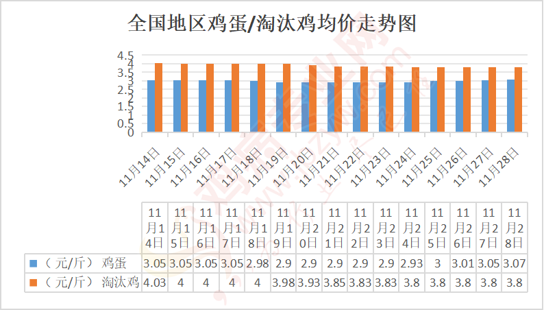 河北地区:廊坊鸡蛋3元/斤,与昨日相比持平,淘汰鸡3.1-3.9元元/斤;