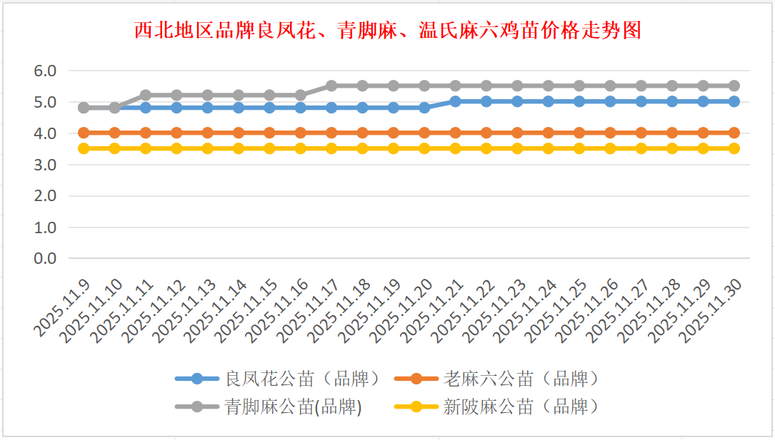 西北地区麻鸡苗价格走势图(来源:鸡病专业网)