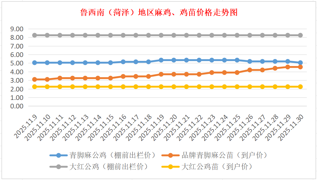 菏泽地区麻鸡、鸡苗价格走势图(来源:鸡病专业网)