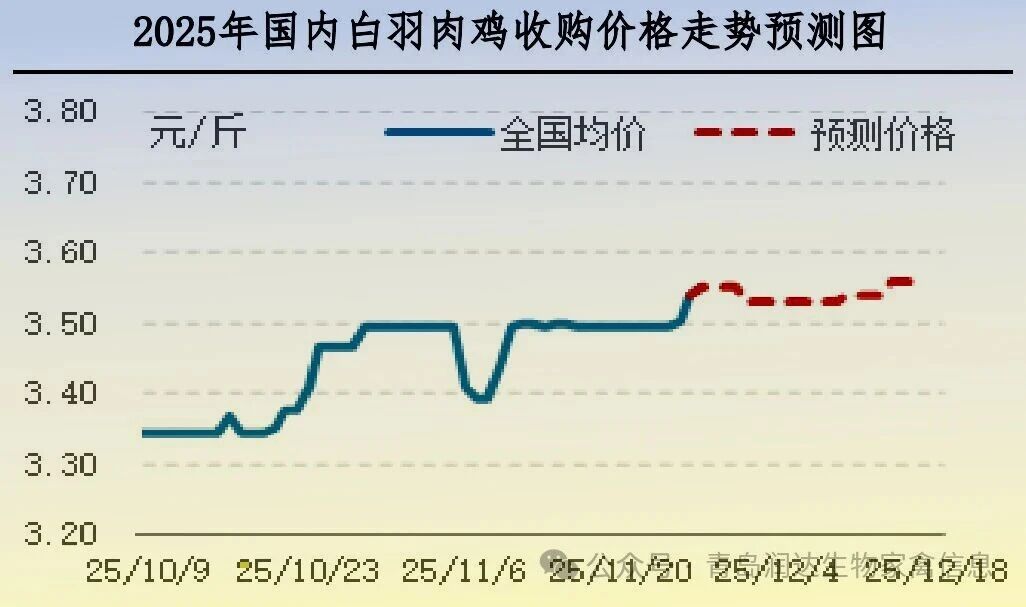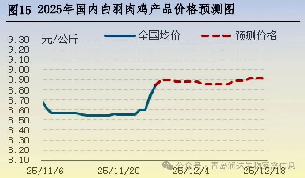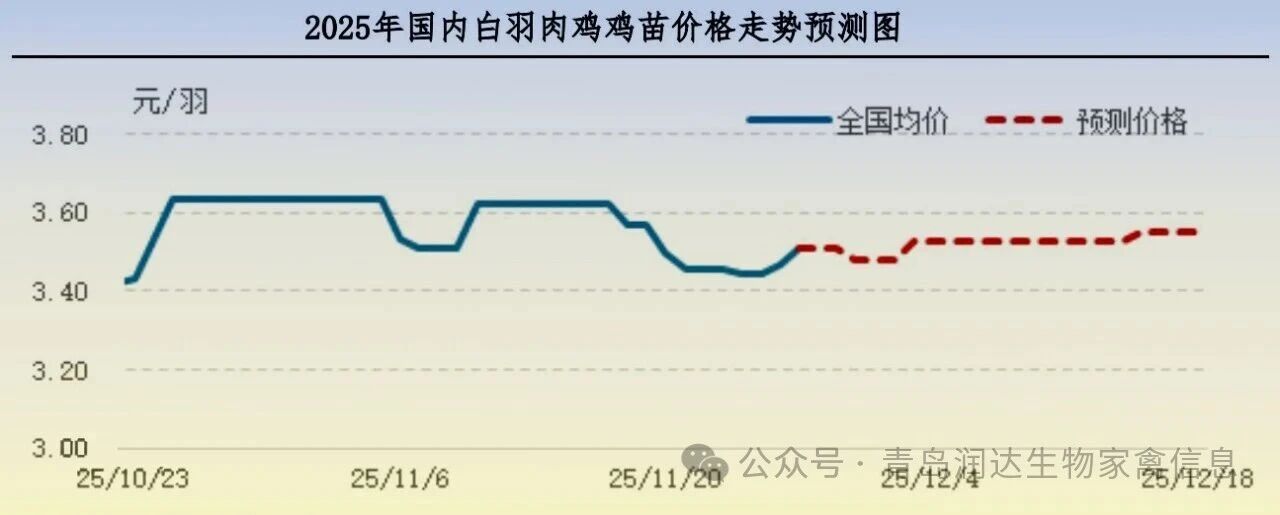 白羽肉鸡鸡苗:预计未来一周全国白羽肉鸡鸡苗价格或呈先跌后涨趋势,周均价环比下跌。据相关机构调研发现,下周孵化场出苗量或大致稳定,年前最后一批毛鸡集中补栏暂未开始,养殖端整体补栏积极性一般,孵化场排苗速度不快,有让利操作,上半周苗价或微降;下半周年前最后一批毛鸡补栏陆续开始,苗市需求好转,孵化场排苗速度加快,苗价或微降。12月中旬鸡苗市场交投活跃,苗价或延续涨势。