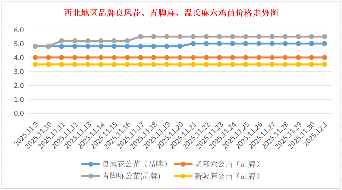 西北地区麻鸡苗价格走势图(来源:鸡病专业网)