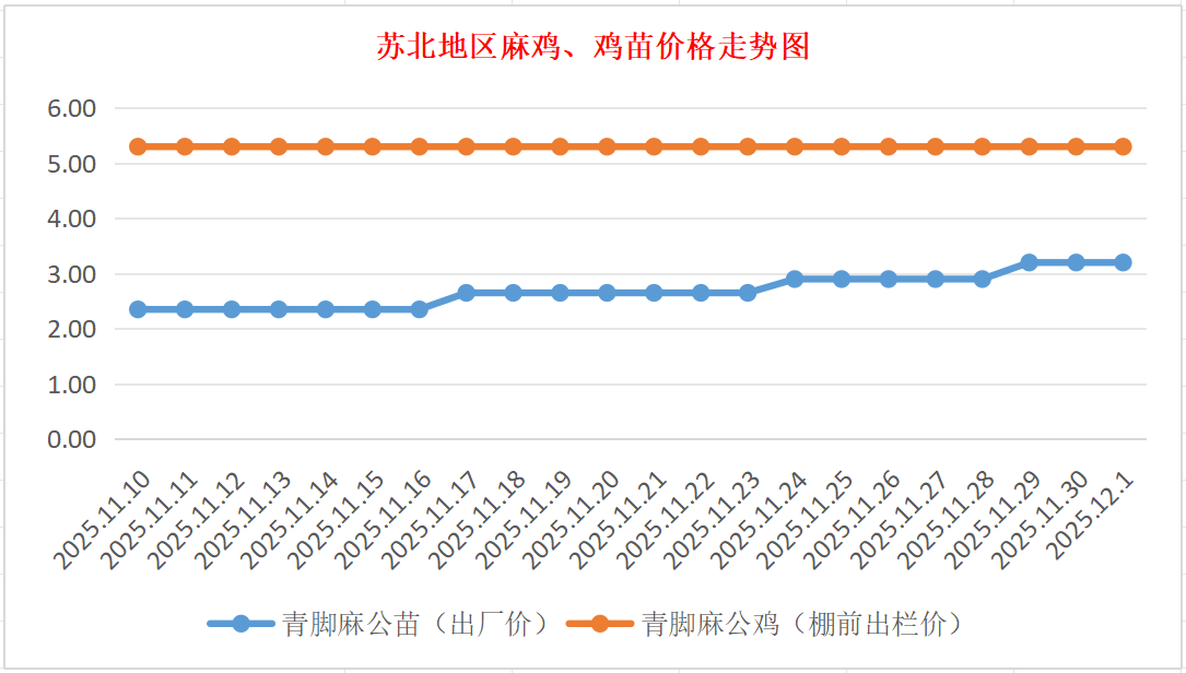 苏北地区麻鸡、鸡苗价格走势图(图源:鸡病专业网)