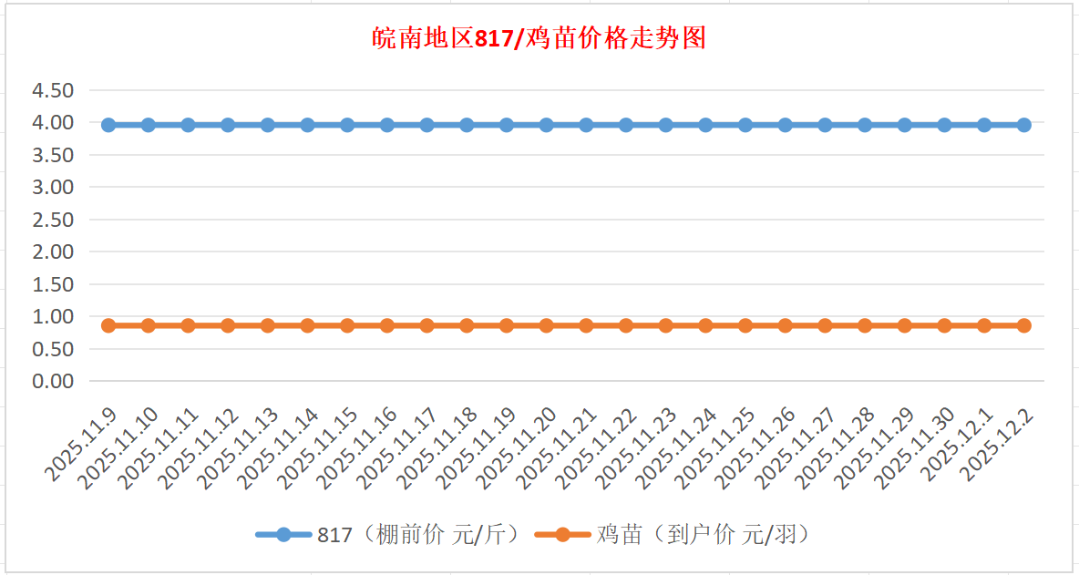 鸡病专业网独家信息:2025年12月2日皖南地区817-麻鸡行情最新走势