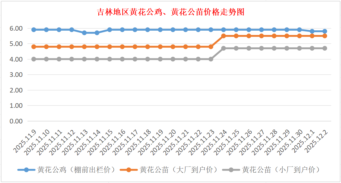 12月2日吉林黄花公鸡、鸡苗价格行情