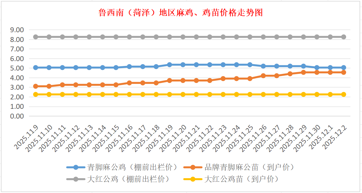 菏泽地区麻鸡、鸡苗价格走势图(来源:鸡病专业网)