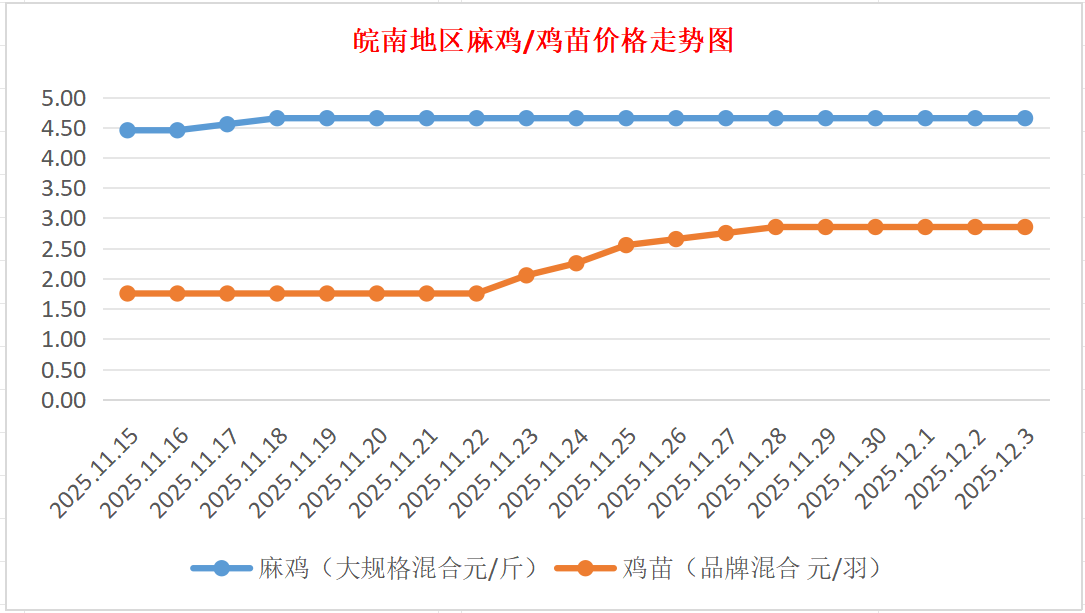 鸡病专业网独家信息:2025年12月3日皖南地区817-麻鸡行情最新走势