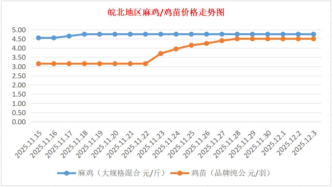 鸡病专业网独家信息:2025年12月3日皖北地区817-麻鸡行情最新走势