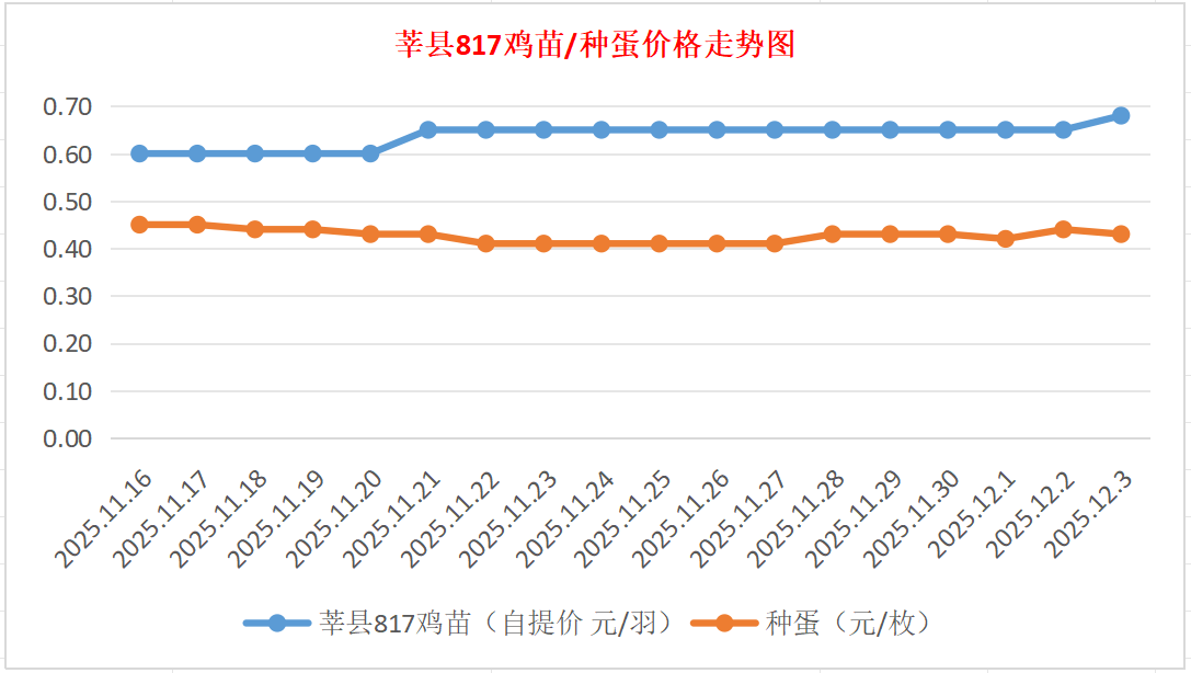 种蛋:昨日种蛋0.43-0.44元/枚。