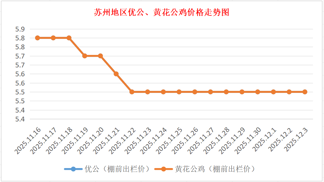 苏州地区优公、黄花公鸡价格走势图(来源:鸡病专业网)