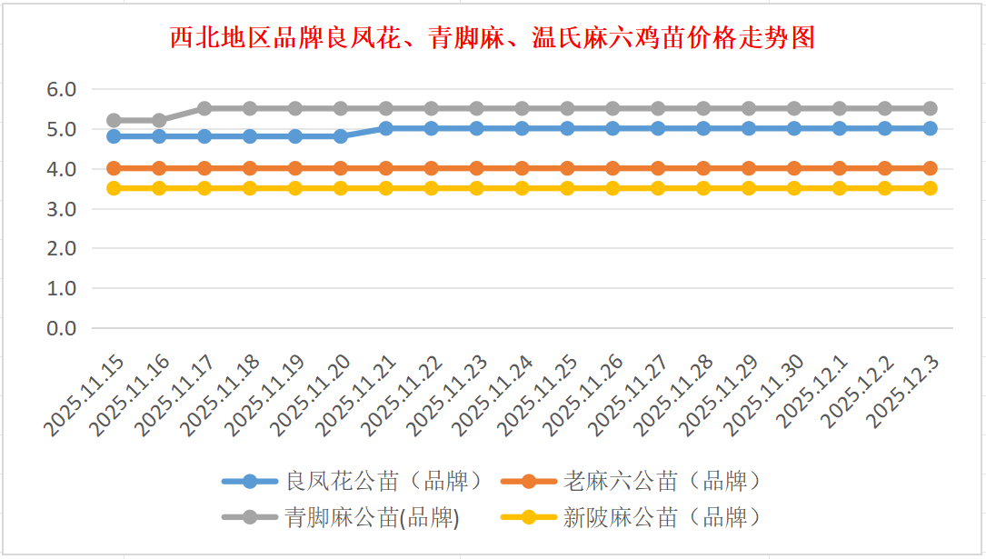 品牌新陂麻:价格稳定,到户价公苗4.50元/羽,稳。