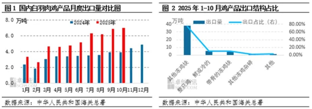 1-10月国内鸡肉产品出口同比增60%,胸肉占比超74%