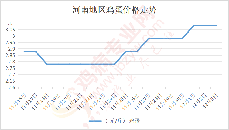 鸡病专业网消息:12月3日,河南郑州鸡蛋3.1元/斤,稳;新密鸡蛋3.1元/斤,稳;荥阳鸡蛋3.1元/斤,稳;中牟鸡蛋3.1元/斤,稳;周口鸡蛋3.05元/斤,稳;商丘鸡蛋93元/30斤,稳;鹤壁鸡蛋3.05元/斤,稳;汝州鸡蛋3.05元/斤,稳;开封鸡蛋93元/30斤,稳;漯河鸡蛋3.05元/斤,稳;漯河临颍鸡蛋3.05元/斤,稳;许昌鸡蛋3.1元/斤,稳;南阳鸡蛋3.05元/斤,稳;南阳邓州鸡蛋3.05元/斤,稳;新乡鸡蛋3.05元/斤,稳;安阳鸡蛋3.05元/斤,稳;新郑鸡蛋3.1元/斤,稳;登封鸡蛋3.1元/斤,稳;平顶山鸡蛋3.1元/斤,稳;驻马店鸡蛋3.1元/斤,稳;三门峡鸡蛋3.1元/斤,稳;焦作鸡蛋3.05元/斤,稳;信阳鸡蛋3.05元/斤,稳;濮阳鸡蛋3.05元/斤,稳。