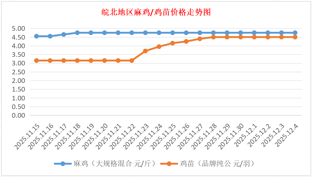鸡病专业网独家信息:2025年12月4日皖北地区817-麻鸡行情最新走势