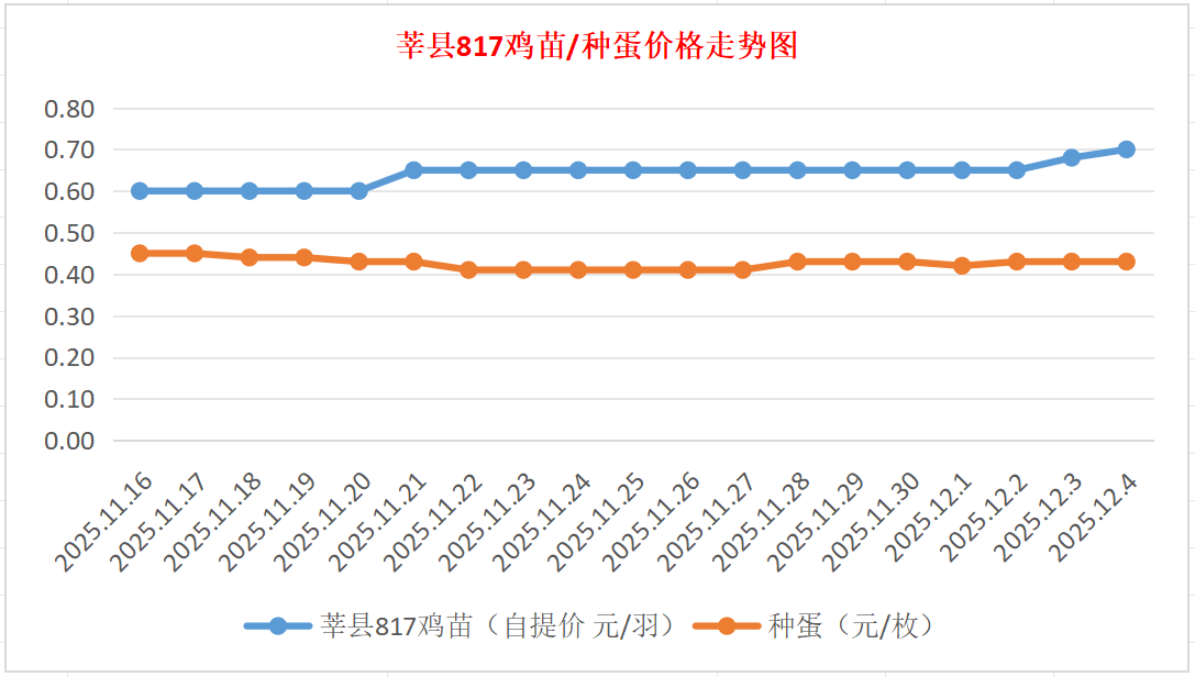817鸡苗(混合):报价自提0.70元/羽。(走高两分)