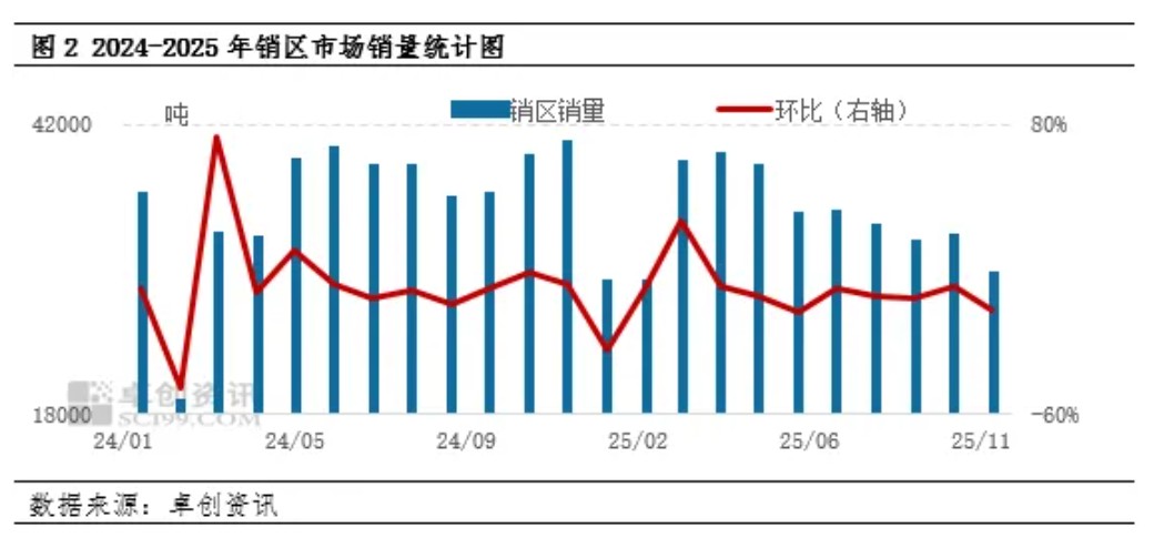 11月上旬受到“双十一”电商和商超促销活动等提振,需求略有好转,供需关系有所收紧,中下旬市场虽缺乏节日利多支撑,但是低温天气利多鸡蛋存储,且蛋价处于相对低位情况下,各环节采用轮库模式,一定程度缓解销售压力,供需关系维持相对平稳,市场无明显节日需求支撑,终端需求始终处于不温不火的状态,叠加业者对后市行情信心不足,故而贸易商多维持低价补货-高价出货-按需采购的循环参市模式,整体需求量有限,销区日均销量环比减少。销区销量受产区发货和销区需求的共同影响,一定程度上反映出产区流出量。长线产能压力虽缓慢减少,短期内产能相对稳定;销区销量即产区流出量呈先减后增趋势,对产区库存的利空作用由强转弱。