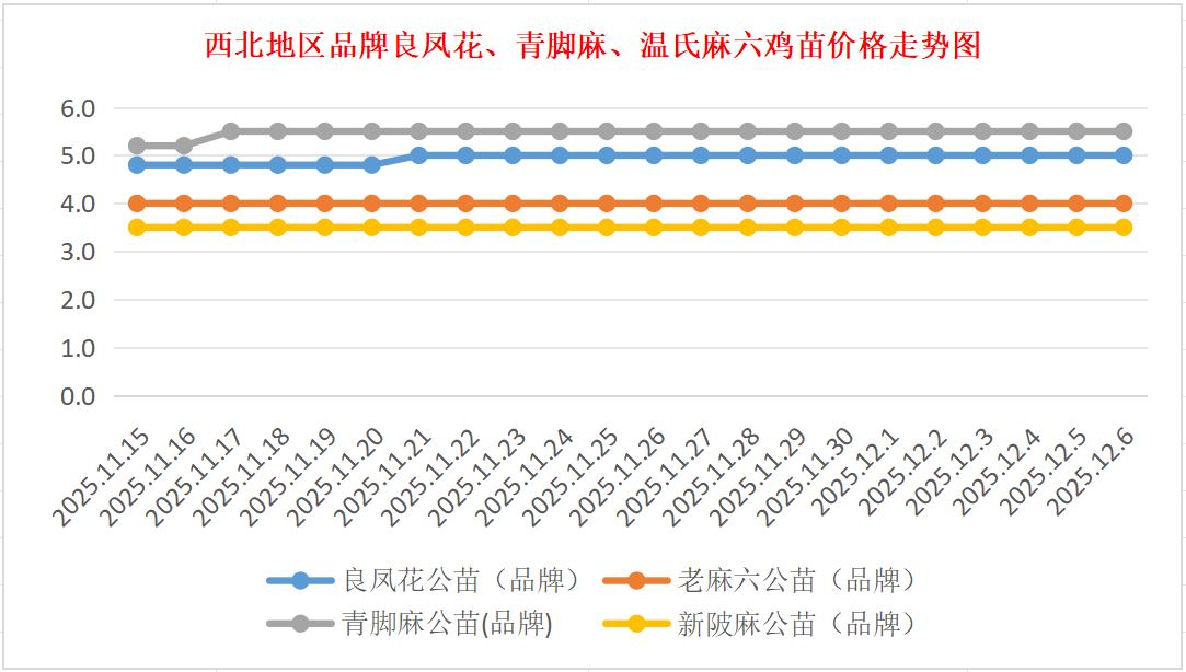品牌新陂麻:价格稳定,到户价公苗4.50元/羽,稳。