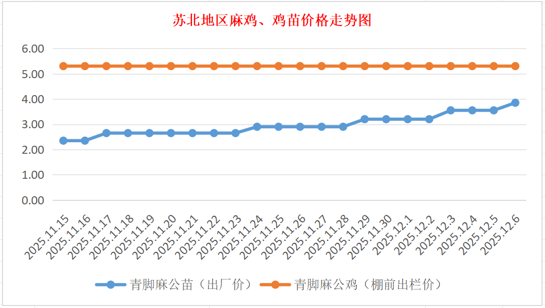 苏北地区麻鸡、鸡苗价格走势图(图源:鸡病专业网)