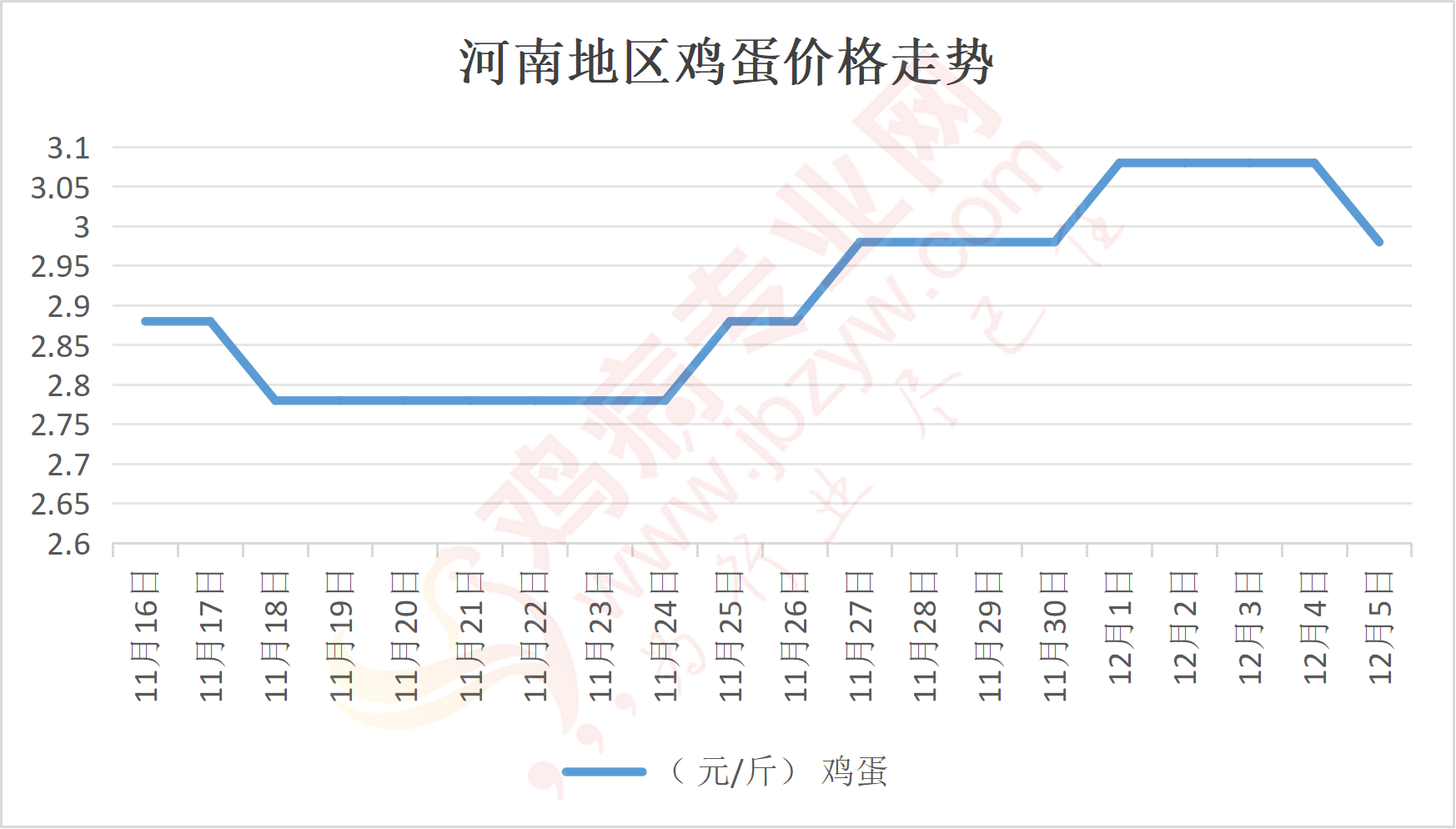 鸡病专业网消息:12月5日,河南郑州鸡蛋3元/斤,落;新密鸡蛋3元/斤,落;荥阳鸡蛋3元/斤,落;中牟鸡蛋3元/斤,落;周口鸡蛋2.95元/斤,落;商丘鸡蛋90元/30斤,落;鹤壁鸡蛋2.95元/斤,落;汝州鸡蛋2.95元/斤,落;开封鸡蛋90元/30斤,落;漯河鸡蛋2.95元/斤,落;漯河临颍鸡蛋2.95元/斤,落;许昌鸡蛋3元/斤,落;南阳鸡蛋2.95元/斤,落;南阳邓州鸡蛋2.95元/斤,落;新乡鸡蛋2.95元/斤,落;安阳鸡蛋2.95元/斤,落;新郑鸡蛋3元/斤,落;登封鸡蛋3元/斤,落;平顶山鸡蛋3元/斤,落;驻马店鸡蛋3元/斤,落;三门峡鸡蛋3元/斤,落;焦作鸡蛋2.95元/斤,落;信阳鸡蛋2.95元/斤,落;濮阳鸡蛋2.95元/斤,落。