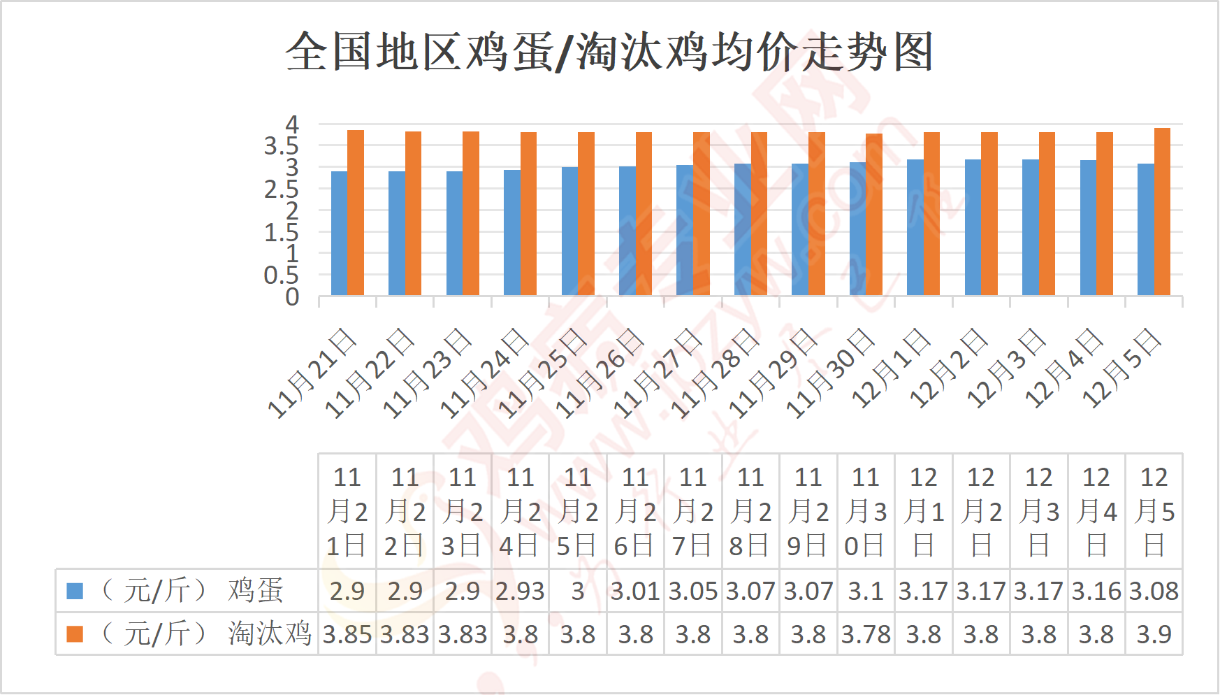 四川地区:成都鸡蛋3.2-3.3元/斤,粉蛋2.9-3元/斤,与昨日相比持平,淘汰鸡3.6-3.7元/斤;