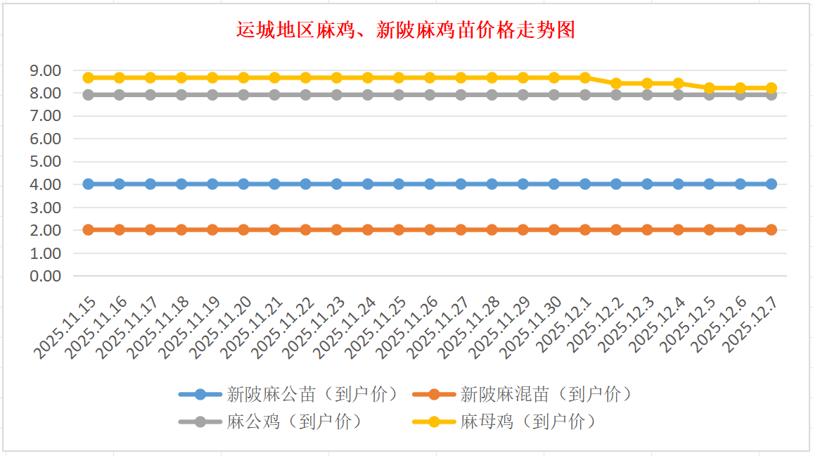 运城地区麻鸡、新陂麻鸡苗价格走势图(来源:鸡病专业网)