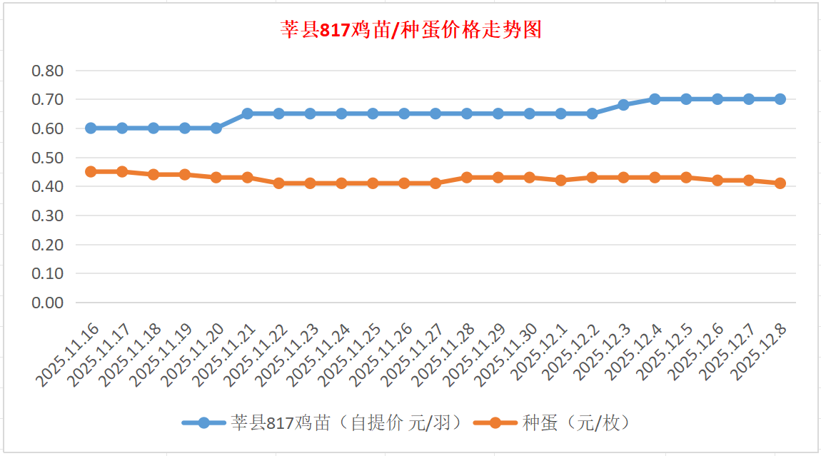 817鸡苗(混合):报价自提0.70元/羽。(稳)