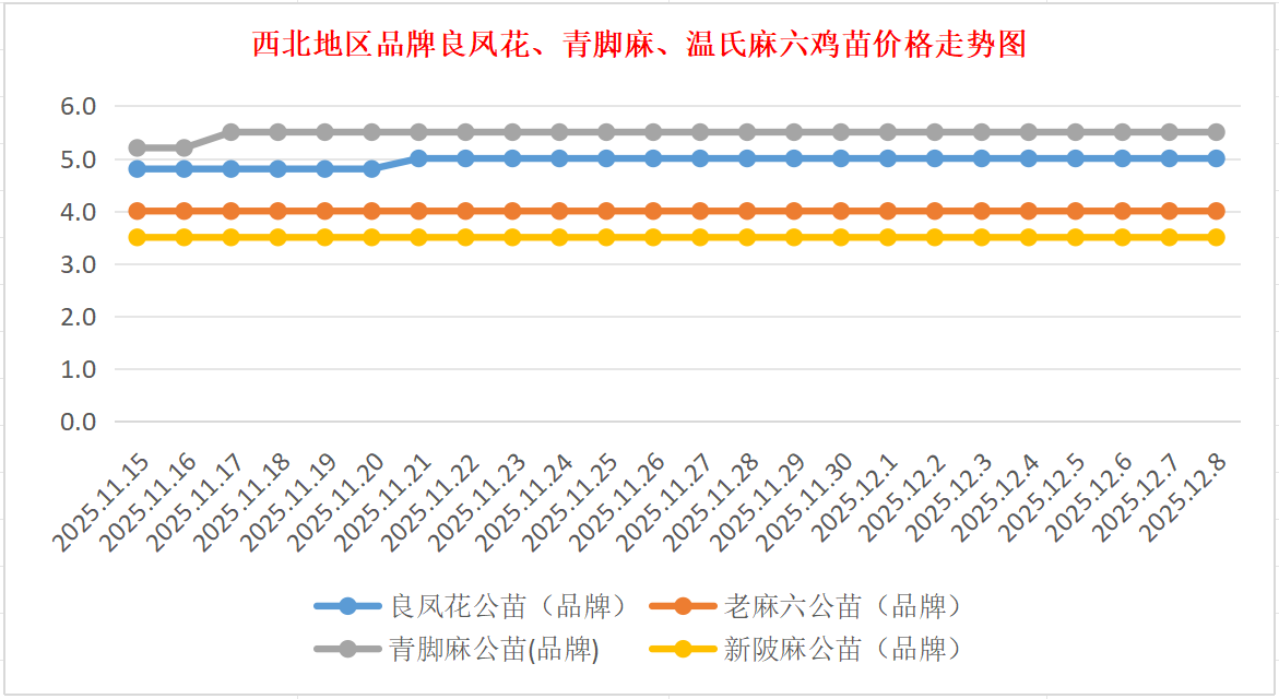 西北地区麻鸡苗价格走势图(来源:鸡病专业网)
